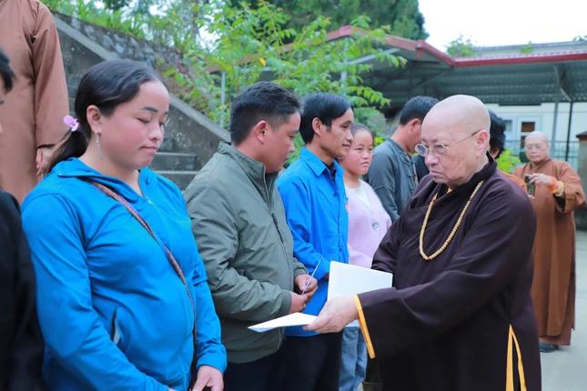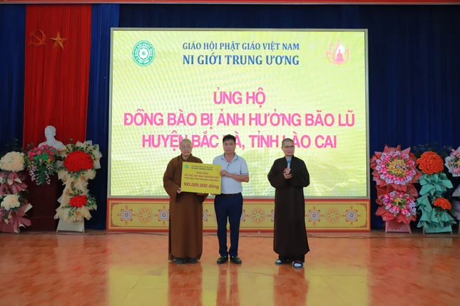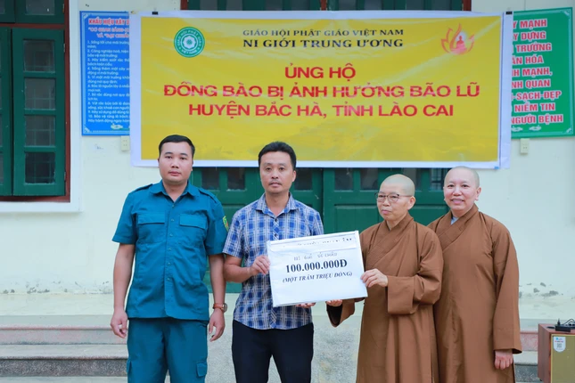 Thay mặt đoàn, Ni trưởng Thích nữ Như Như phát biểu chia sẻ tại xã Nậm Khánh, cho biết chuyến thăm lần này với tất cả tấm lòng của Tăng Ni, Phật tử, đồng bào miền Nam và miền Trung hướng về đồng bào miền Bắc; cầu nguyện cho bà con nơi đây gặp nhiều thiện duyên hơn nữa để tái thiết cuộc sống sau bão lũ.