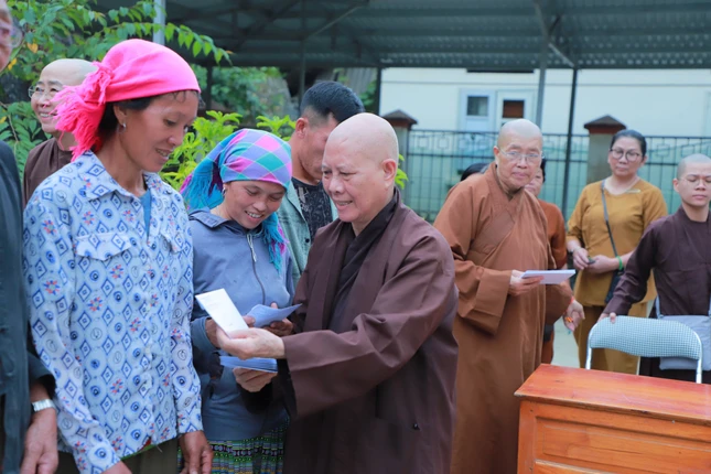 Ni trưởng Thích nữ Nhật Khương trao hỗ trợ đến những gia đình khó khăn sau bão lũ |