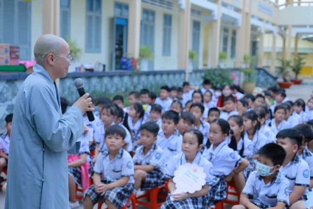 Ni sư Thích nữ Huệ Dâng, Phó Trưởng Phân ban Ni giới T.Ư kiêm Trưởng Tiểu ban Hướng dẫn Phật tử; bà Nguyễn Thị Mỹ Hạnh, Phó Trưởng phòng Giáo dục H.Bình Đại; ông Phạm Minh Trí, Hiệu trưởng Trường Tiểu học Nguyễn Trí Việt, cùng chư Ni, thầy cô giáo và hơn 332 em học sinh tham dự.