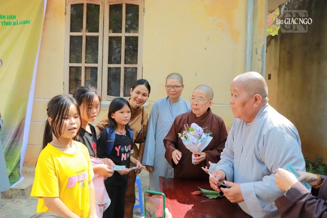 Tại buổi trao quà, Ni trưởng Thích nữ Nhật Khương cho biết hành trình đoàn từ TP.HCM đến Hà Giang với tình cảm nghĩa tình chia sẻ cùng sự mất mát của đồng bào nơi đây khi vừa trải qua thiên tai, lũ lụt. Ni trưởng cũng mong bà con nên cố gắng làm ăn, vượt qua khó khăn.