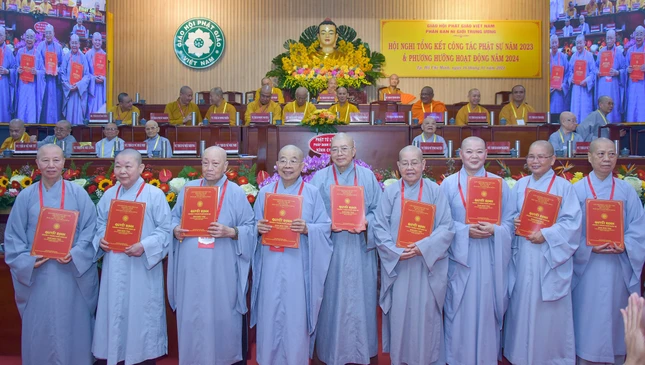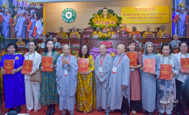 Dịp này, Phân ban Ni giới T.Ư tặng Bằng tuyên dương công đức đến 3 tiểu ban trực thuộc: Hoằng pháp, Hướng dẫn Phật tử, Từ thiện xã hội đã có những hoạt động Phật sự xuất sắc trong năm 2023.