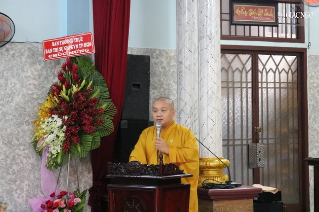 Phát biểu khai mạc, Thượng tọa Thích Minh Thanh, Trưởng ban Trị sự GHPGVN huyện cho biết Ban Trị sự và các tự viện trong quận tuy còn nhiều khó khăn nhưng với truyền thống đoàn kết, chung lo Phật sự, nhất là lĩnh vực Giáo dục Tăng Ni và từ thiện xã hội…