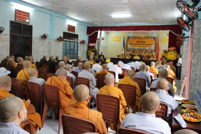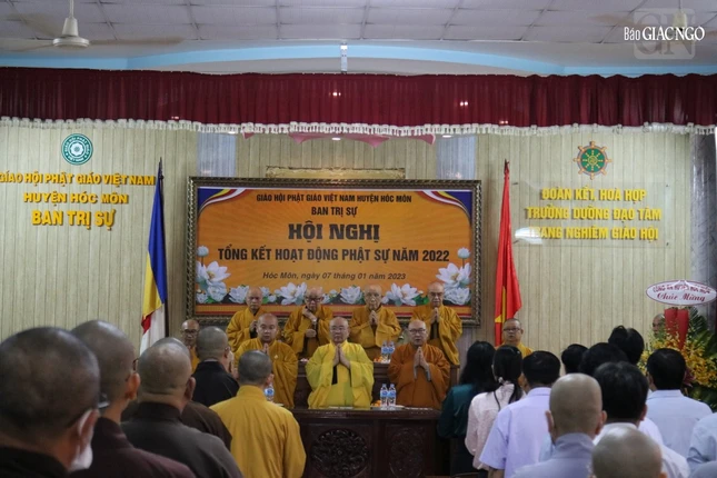 Đại đức Thích Huệ Thông, Chánh Thư ký Phật giáo huyện báo cáo tổng kết, cho biết trên địa bàn quận có 41 cơ sở tự viện, chư Tăng và chư Ni 26 vị.
