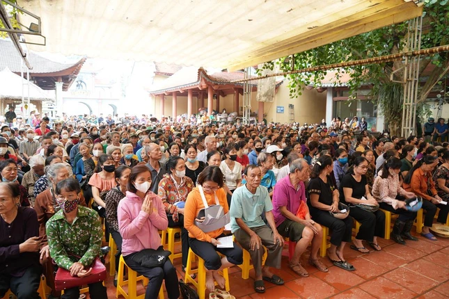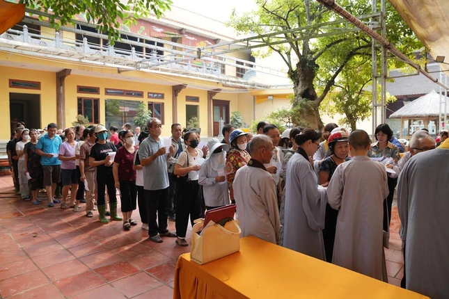 | Người dân đến nhận quà tại chùa Tùng Lâm Ngọc Am - trụ sở Ban Trị sự GHPGVN tỉnh Yên Bái (P.Hồng Hà, TP.Yên Bái) |