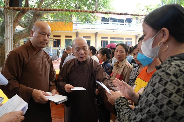 | Hòa thượng Thích Bảo Nghiêm phát biểu chia sẻ, động viên bà con cố gắng nỗ lực, vượt qua khó khăn |