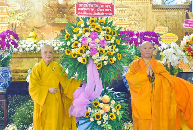 Sau khi thực hiện nghi thức rước kiệu Đức Phật từ Văn phòng Ban Trị sự - chùa Long Bửu về Linh Quang tịnh xá, toàn thể đại chúng tổ chức Đại lễ Phật đản Phật lịch 2568 của Phật giáo Q.4.