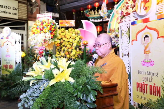 Tại buổi lễ, toàn thể đại chúng lắng lòng nghe Hòa thượng Thích Huệ Công tuyên đọc Thông điệp Phật đản của Đức Pháp chủ GHPGVN - Đại lão Hòa thượng Thích Trí Quảng. Thượng tọa Thích Truyền Cường đọc Diễn văn Phật đản Phật lịch 2568 của Trưởng lão Hòa thượng Chủ tịch Hội đồng Trị sự gửi đến toàn thể Tăng Ni, Phật tử.