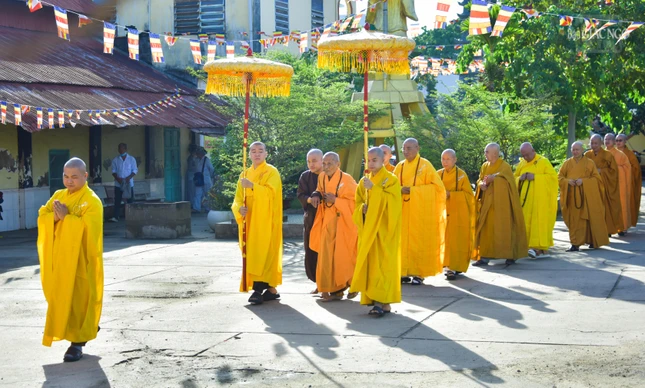 GNO - Sáng nay, 17-5, Đại lễ Phật đản Phật lịch 2568 của Phật giáo Q.7 được tổ chức tại Long Hoa cổ tự - Văn phòng Ban Trị sự (P.Phú Mỹ, Q.7) với sự tham dự của đông đảo Tăng Ni, Phật tử trên địa bàn.