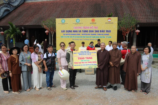 Đoàn đã trao bảng tượng trưng xây dựng 8 căn nhà (mỗi căn 50 triệu đồng) và trao tặng 100 phần quà (mỗi phần 1,5 triệu đồng) hỗ trợ người dân tái thiết cuộc sống sau bão lũ.
