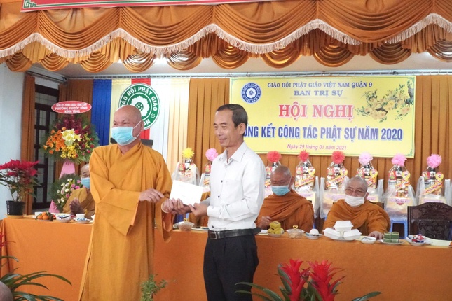 Đại đức Thích Lệ Minh, Phó Thư ký đã báo cáo công tác Phật sự năm 2020. Theo đó, Phật giáo quận 9 cũng hoàn thành việc thống kê Tăng Ni, tự viện: có 39 cơ sở sinh hoạt trong lòng Giáo hội, 19 cơ sở chưa gia nhập Giáo hội; với 289 Tăng Ni.