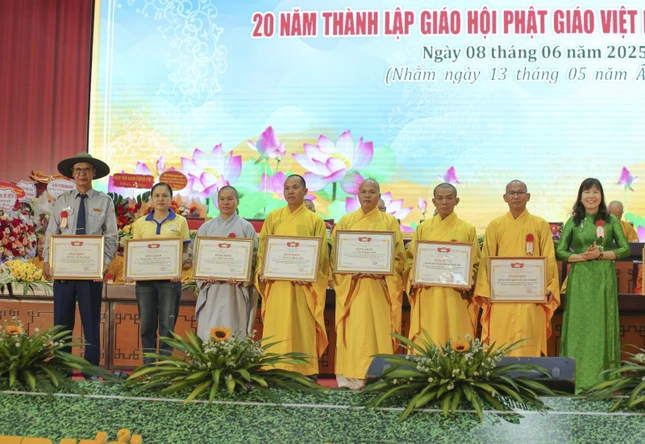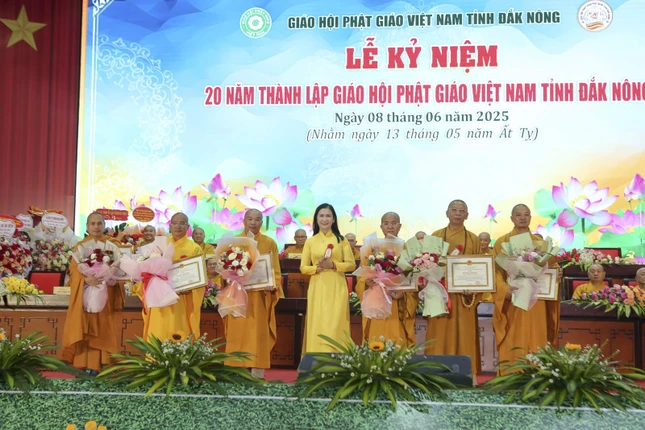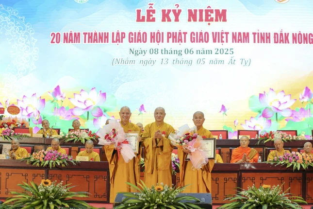 Ghi nhận đóng góp của tập thể và những cá nhân xuất sắc của Ban Trị sự GHPGVN tỉnh Đắk Nông, GHPGVN tặng Bằng tuyên dương công đức cho tập thể Ban Trị sự GHPGVN tỉnh Đắk Nông và 3 cá nhân, 1 tập thể và 6 cá nhân đón nhận Bằng khen của UBND tỉnh, 5 tập thể và 9 cá nhân đón nhận Bằng khen của UBMTTQVN tỉnh, Ban Trị sự GHPGVN tỉnh Đắk Nông cũng trao tặng Bằng tuyên dương công đức cho 16 tập thể có thành tích xuất sắc.