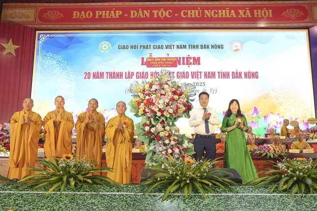Đại diện lãnh đạo tỉnh nhà, bà Tôn Thị Ngọc Hạnh, Phó Chủ tịch UBND tỉnh Đắk Nông đã có lời phát biểu chúc mừng và đặt nhiều niềm tin vào GHPGVN tỉnh Đắk Nông, cùng Tăng Ni, Phật tử trong tỉnh sẽ tiếp tục thể hiện vai trò, uy tín của mình trong việc tăng cường xây dựng khối đại đoàn kết toàn dân tộc, đoàn kết các tôn giáo; chú trọng nắm bắt tâm tư, nguyện vọng và quan tâm chăm lo đời sống vật chất, tinh thần cho đồng bào Phật giáo nhất là đồng bào có hoàn cảnh khó khăn; tiếp tục thực hiện các hoạt động Phật sự theo phương châm “Đạo pháp - Dân tộc - Chủ nghĩa xã hội”; tích cực hưởng ứng các phong trào thi đua yêu nước, phát triển kinh tế - xã hội và hướng dẫn, vận động Tăng Ni, Phật tử tỉnh nhà hoạt động tôn giáo thuần túy, chấp hành tốt đường lối, chủ trương của Đảng, chính sách, pháp luật của Nhà nước, chung tay cùng các cấp chính quyền, Mặt trận Tổ quốc, các đoàn thể và nhân dân xây dựng tỉnh Đắk Nông có chất lượng sống tốt, văn minh, hiện đại, nghĩa tình.