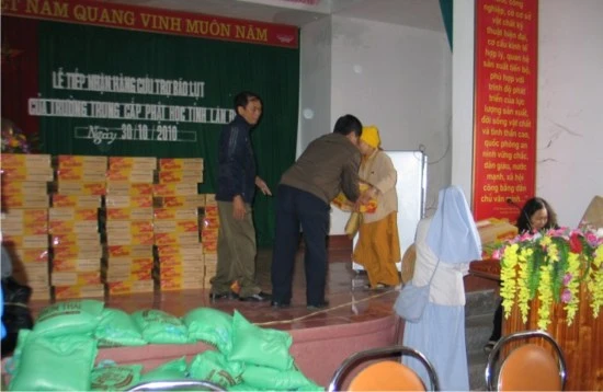 Trước đó, Trường Trung cấp Phật học Lâm Đồng cũng đã đến thăm và trao tặng 600 phần quà trị giá 300.000 đồng/phần cho bà con tại xã Quảng Hải, Quảng Trung, Quảng Thủy thuộc huyện Quảng Trạch, tỉnh Quảng Bình; xã Nghi Lộc, huyện Lộc Hải, tỉnh Hà Tĩnh.