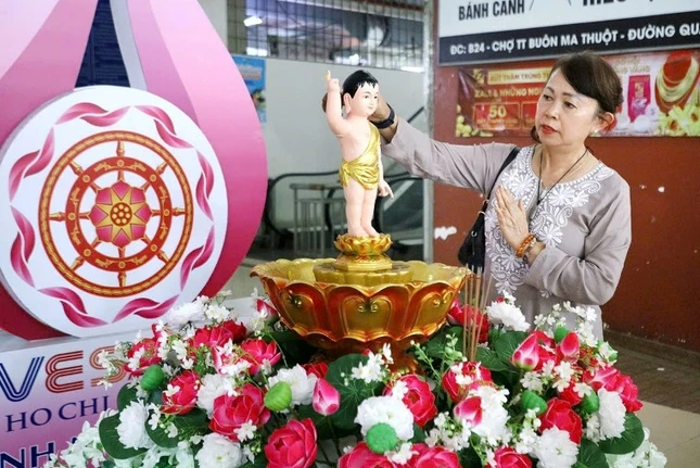 Được biết biểu tượng Vesak 2025 và tôn tượng Phật sơ sinh được tôn trí ở các điểm công cộng trên địa bàn TP.Buôn Ma Thuột từ ngày 5-4 đến ngày 16-4-Ất Tỵ.