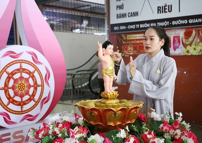 GNO - Sáng 3-5 (6-4-Ất Tỵ), nằm trong chuỗi các sự kiện kính mừng Phật đản Phật lịch 2569 - Dương lịch 2025, Thường trực Ban Trị sự GHPGVN TP.Buôn Ma Thuột (tỉnh Đắk Lắk) trang trọng cử hành Lễ tắm Phật tại các điểm công cộng như Mega Market (siêu thị Metro) và 2 điểm quanh chợ Buôn Ma Thuột.
