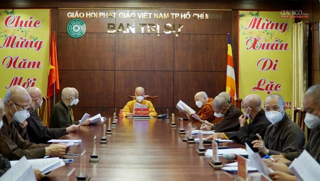 Đại diện Ban Thư ký Ban Trị sự, Thượng tọa Thích Thiện Quý báo cáo một số hoạt động Phật sự, trình dự thảo kế hoạch tổ chức đại hội, kỷ niệm 40 năm hình thành và phát triển của Giáo hội TP.HCM. Chư tôn đức Ban Thường trực đã thảo luận, thống nhất thành lập Ban Chứng minh, Ban Tổ chức Đại hội, cùng các Tiểu ban thuộc Ban Tổ chức, triển khai các nội dung chuẩn bị văn kiện đại hội…