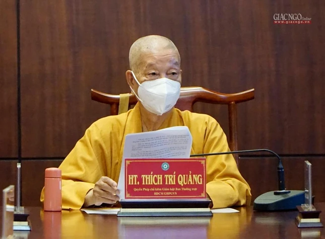 Trưởng lão Hòa thượng Thích Trí Quảng, Quyền Pháp chủ GHPGVN, Trưởng ban Trị sự Phật giáo TP.HCM chủ trì buổi họp.