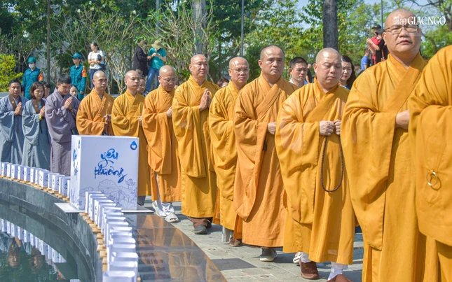 Sau khóa lễ khai đàn Pháp hội Dược Sư cầu nguyện quốc thái dân an, phong điều vũ thuận tại Việt Nam Quốc Tự, phái đoàn chư tôn đức trong Ban Thường trực Ban Trị sự GHPGVN TP.HCM do Hòa thượng Thích Lệ Trang, Phó Chủ tịch Hội đồng Trị sự, Trưởng ban Trị sự GHPGVN TP.HCM dẫn đầu đã đến khu vực tượng đài Giọt nước - công trình tưởng niệm đồng bào, lực lượng tuyến đầu tử vong trong đại dịch Covid-19 tọa lạc tại Công viên số 1 Lý Thái Tổ để thực hiện khóa lễ tưởng niệm, kỳ siêu.