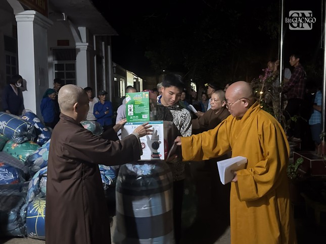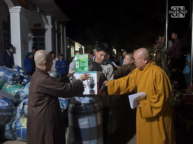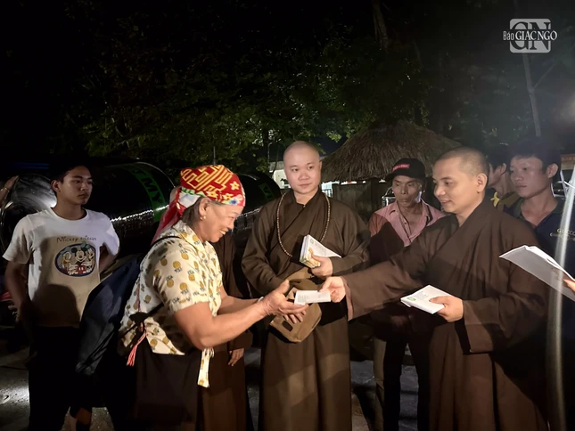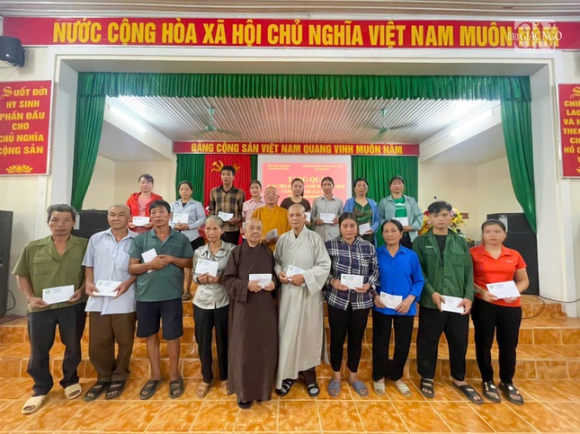 Mỗi điểm đến, chư tôn đức trong đoàn đã thăm hỏi, chia sẻ với chính quyền địa phương và người dân bị ảnh hưởng, thiệt hại nặng nề do bão số 3 gây ra.
