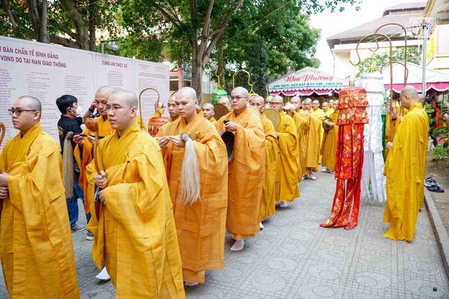 Chiều cùng ngày, chư tôn đức Tăng Ni các hệ phái Phật giáo, Phật tử các đạo tràng, thân nhân các gia đình có người thân qua đời do tai nạn giao thông trang nghiêm tham dự đàn tràng, nhất tâm hiệp lực phúng tụng kinh Địa Tạng và Mông sơn thí thực khoa nghi do Hòa thượng Thích Hoằng Tri đương vi chủ lễ.