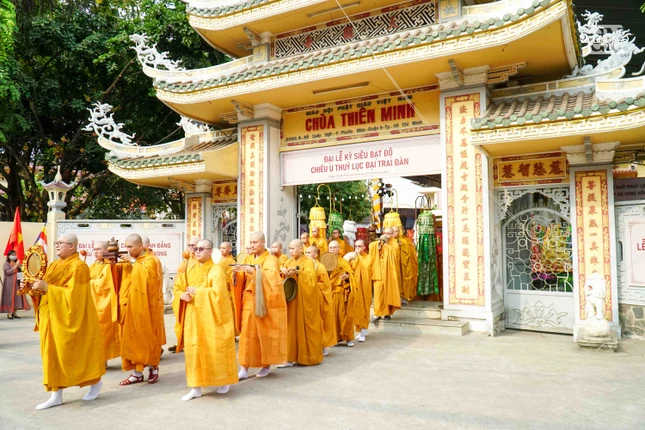 GNO - Sáng nay, 31-3 (10-2 nhuận-Quý Mão), Ban Trị sự GHPGVN TP.Thủ Đức đã trang nghiêm tổ chức “Kỳ siêu bạt độ, chiêu u thủy lục đại trai đàn”, cầu siêu nạn nhân tử vong do tai nạn giao thông tại chùa Thiên Minh (614 Đỗ Xuân Hợp, P.Phước Bình).