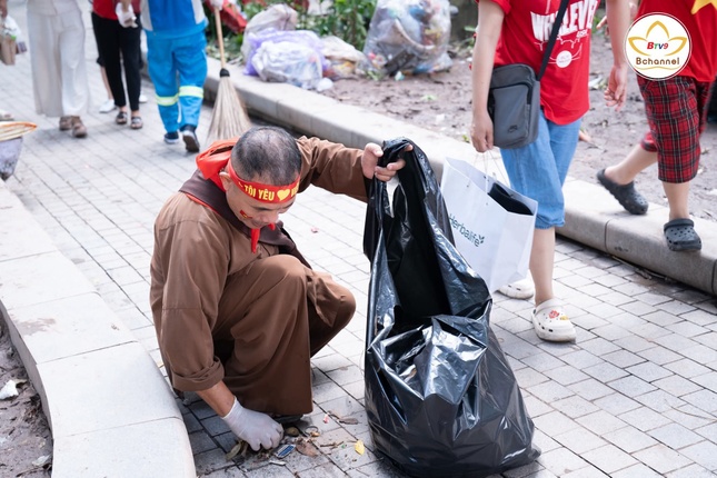 Theo đó, đoàn Phật tử chùa Khai Nguyên, dưới sự hướng dẫn của chư Tăng Ni, âm thầm ở lại cần mẫn dọn sạch những mẩu rác còn sót lại quanh khu vực Hồ Gươm.