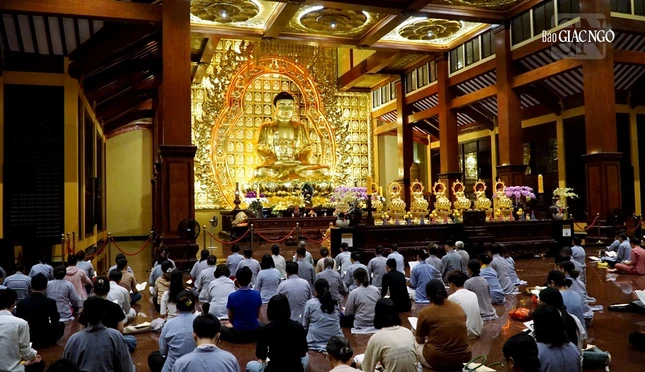 GNO - Tối ngày 10-4-Giáp Thìn (17-5-2024), ngày thứ hai của Tuần lễ Phật đản Phật lịch 2568, Phật tử TP.HCM đã về Việt Nam Quốc Tự tham gia khóa lễ trì tụng kinh.