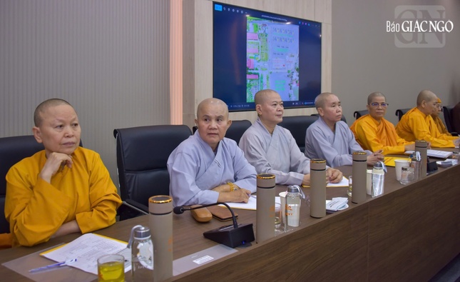 Tiếp đó, Thượng tọa Thích Nhật Từ, Phó Tổng Thư ký Thường trực Ủy ban Tổ chức Quốc gia Đại lễ Vesak Liên Hiệp Quốc 2025 tại Việt Nam đã báo cáo một số công tác chuẩn bị cho Đại lễ. Các hạng mục hình thức trang trí đã và đang được hoàn thiện như: cổng chào, các khu vực diễn ra những hoạt động chính của Đại lễ; các cung đường di chuyển trong và ngoài khuôn viên Học viện cũng như cung đường di chuyển từ sân bay Tân Sơn Nhất về Học viện; pano, áp-phích, khu tiếp đón khách tại sân bay Tân Sơn Nhất v.v…