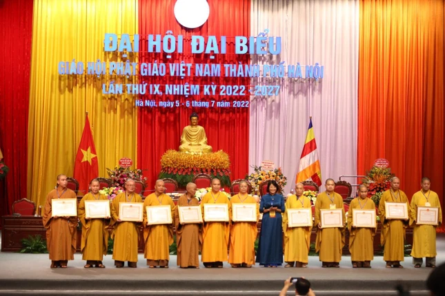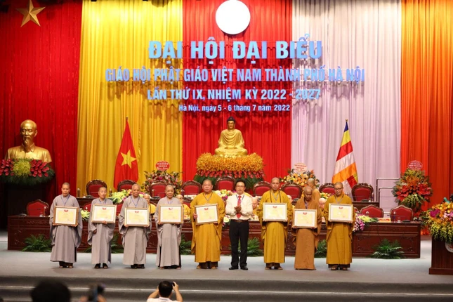 Ông Đỗ Đức Thịnh, Phó ban Thi đua khen thưởng Thành phố công bố quyết định khen thưởng của Ủy ban Nhân dân TP.Hà Nội đến 25 cá nhân và Ủy ban Trung ương MTTQVN tặng Bằng khen đến 13 cá nhân. Trung ương GHPGVN trao tặng Bằng tuyên dương công đức đến 25 cá nhân; Ban Thường trực Ban Trị sự GHPGVN TP.Hà Nội tặng Bằng tuyên dương công đức đến 14 cá nhân có thành tích xuất sắc trong các công tác Phật sự trong khóa VIII, nhiệm kỳ 2017-2022.