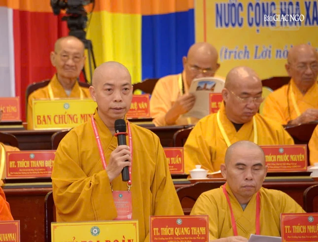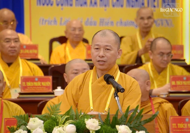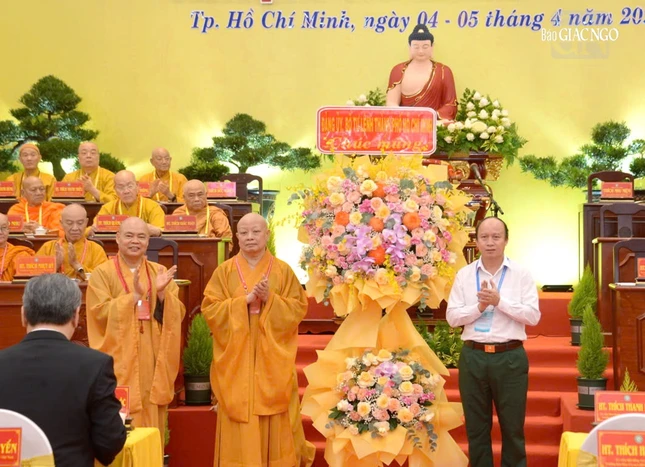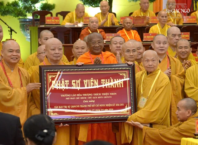 "Giáo hội trân trọng ghi nhận công đức của Ban Trị sự với tinh thần đoàn kết, hòa hợp. Đại hội đã suy cử tân Ban Trị sự, nhiệm kỳ 2026-2031 với chủ đề 'Kỷ cương - Đổi mới - Hiệu lực - Hiệu quả', thích hợp hoàn cảnh hiện nay. Tôi tin tưởng Ban Trị sự Phật giáo TP.HCM nhiệm kỳ mới sẽ đạt được kết quả hoạt động Phật sự nhiệm kỳ sau cao hơn nhiệm kỳ trước", Trưởng lão Hòa thượng Thích Thiện Nhơn phát biểu chỉ đạo tại Đại hội.