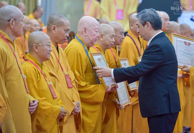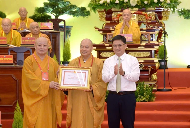 Dịp này, Thượng tọa Thích Minh Nhẫn, Ủy viên Thư ký Hội đồng Trị sự, Phó Văn phòng II T.Ư công bố quyết định tặng Bằng tuyên dương công đức của GHPGVN đến tập thể Ban Trị sự và các cá nhân; đại diện UBND TP.HCM công bố các đề xuất khen thưởng cấp Nhà nước; UBND, UBMTTQVN TP.HCM tặng Bằng khen đến tập thể và các cá nhân có thành tích trong hoạt động Phật sự và đóng góp an sinh xã hội trong nhiệm kỳ qua.