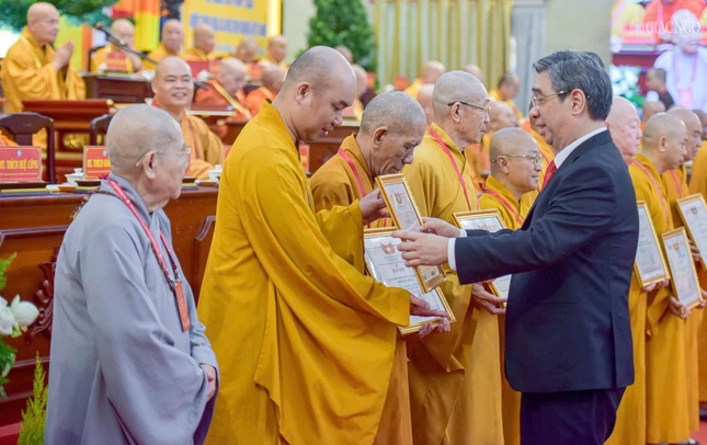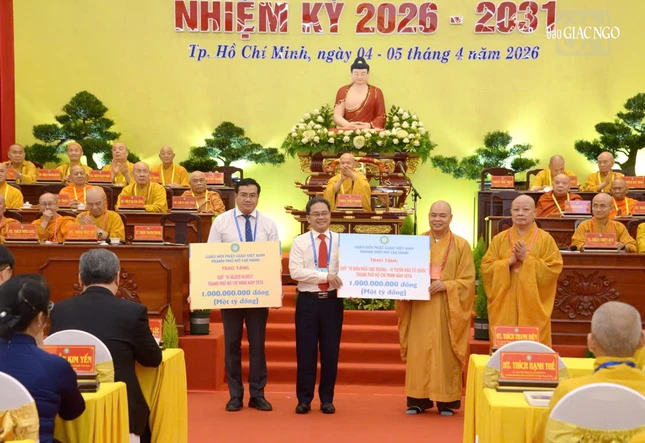 Dịp này, Ban Trị sự Phật giáo TP.HCM nhiệm kỳ 2026-2031 trao bảng tặng "vườn cây đại đoàn kết" với 30.000 cây xanh; ủng hộ 2 tỷ đồng vào Quỹ “Vì người nghèo” và Quỹ “Vì biển đảo quê hương - Vì tuyến đầu Tổ quốc” của Thành phố.