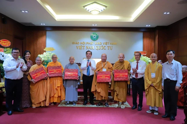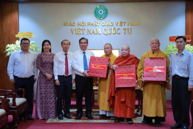 GNO - Ngày 9-5, ông Nguyễn Phước Lộc, Phó Bí thư Thành ủy, Chủ tịch UBMTTQVN TP.HCM cùng lãnh đạo các sở, ban ngành đến Việt Nam Quốc Tự (Q.10) thăm, chúc mừng Đại lễ Phật đản Phật lịch 2569 đến các thành viên MTTQVN T.Ư và Thành phố.