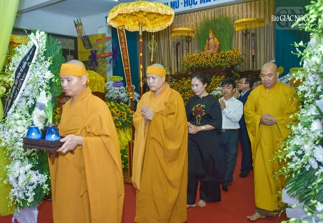 Sau khi phái đoàn hữu nhiễu kim quan, Phó Thủ tướng Chính phủ Lê Minh Khái đại diện phái đoàn ghi sổ tang lưu niệm, phân ưu cùng GHPGVN và Ban Tổ chức lễ tang cùng môn đồ pháp quyến.