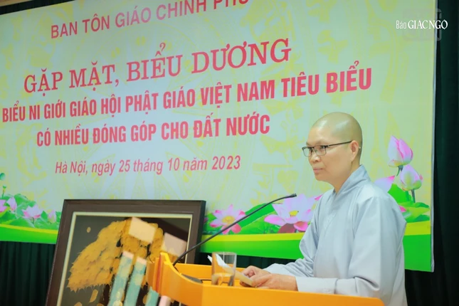 Ni trưởng bày tỏ tri ân sự quan tâm, giúp đỡ của Chính phủ, Bộ, ban, ngành trong thời gian qua. Ni trưởng cho biết: “Cuộc gặp mặt hôm nay là dịp để chư Ni có những đề xuất đến Chính phủ, bộ, ban ngành về những vấn đề quan tâm và là động lực để Ni giới tiếp tục trên con đường phát triển Giáo hội, phụng sự nhân sinh”.