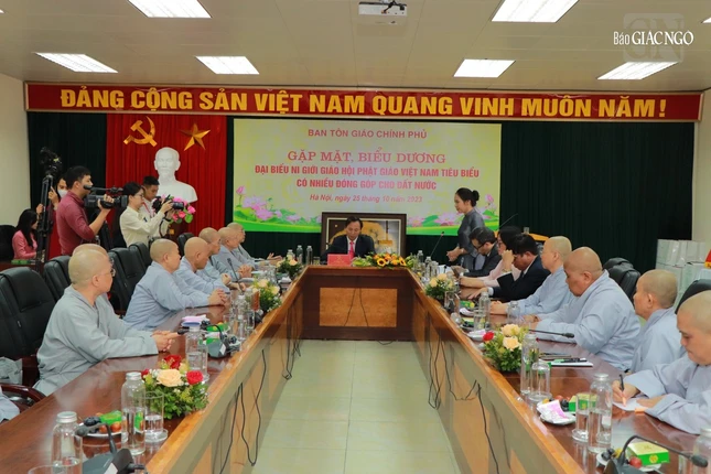 Tại đây, ông Trưởng ban Tôn giáo Chính phủ đã biểu dương những đóng góp của chư Ni trong công tác an sinh xã hội, từ thiện nhân đạo, nhất là trong đợt phòng chống dịch Covid-19 vừa qua. Ông ghi nhận những ý kiến và hứa sẽ phối hợp với các bộ, ban, ngành để có những hỗ trợ thiết thực, giúp chư Ni thuận tiện trong hoạt động Phật sự.