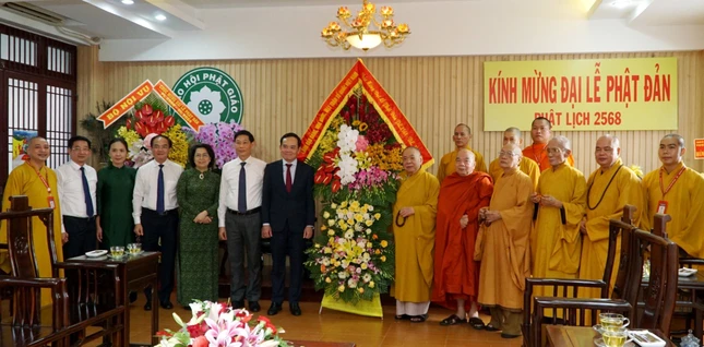 Phó Thủ tướng Chính phủ Trần Lưu Quang thay mặt lãnh đạo Đảng, Nhà nước, MTTQVN và Chính phủ tặng hoa chúc mừng nhân Đại lễ Phật đản Phật lịch 2568 |