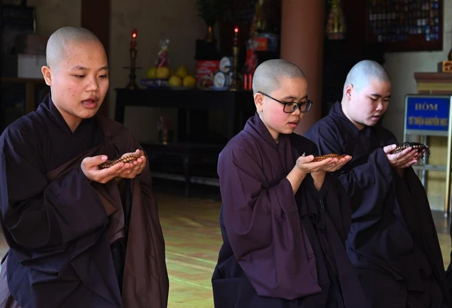 Tam sư truyền giới cho giới tử Ni |