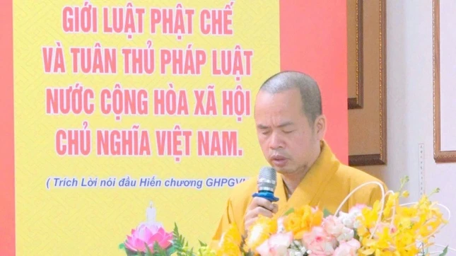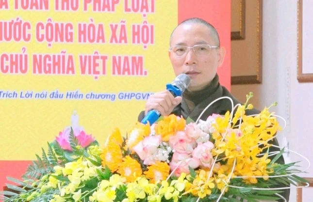 Thượng tọa Thích Minh Nghiêm phát biểu |