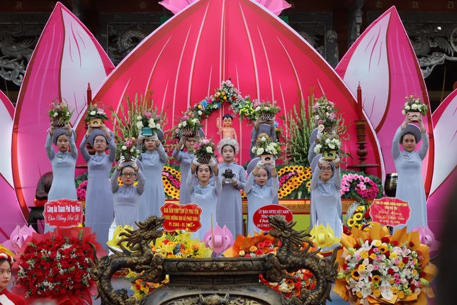 Tại buổi lễ, Ban Tổ chức được đón nhận nhiều lẵng hoa tươi thắm chúc mừng Phật đản từ lãnh đạo các sở, ngành của tỉnh.