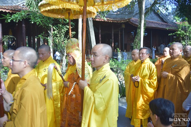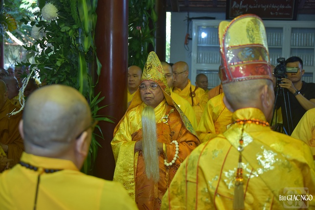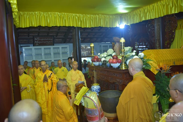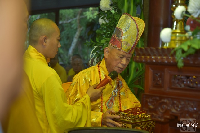 Theo đó, chư tôn đức Ban Nghi lễ đã thực hiện nghi thức phát hành, cung thỉnh kim quan thăng thượng giá.