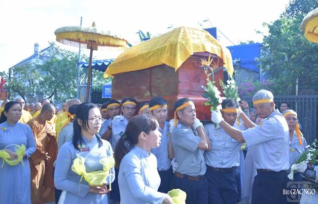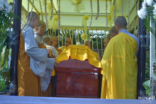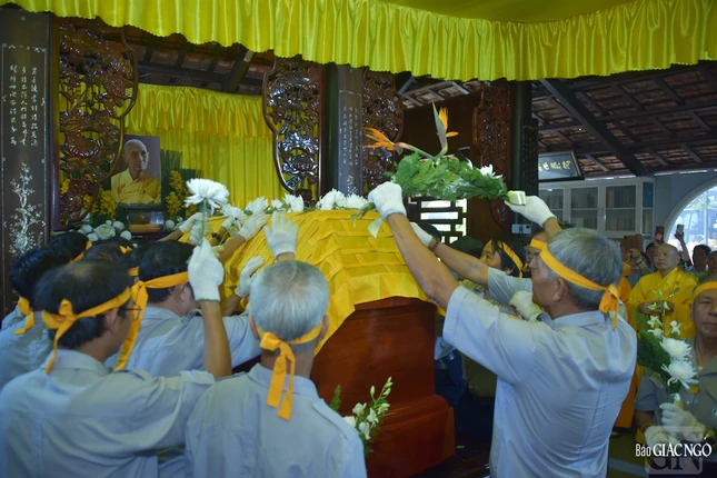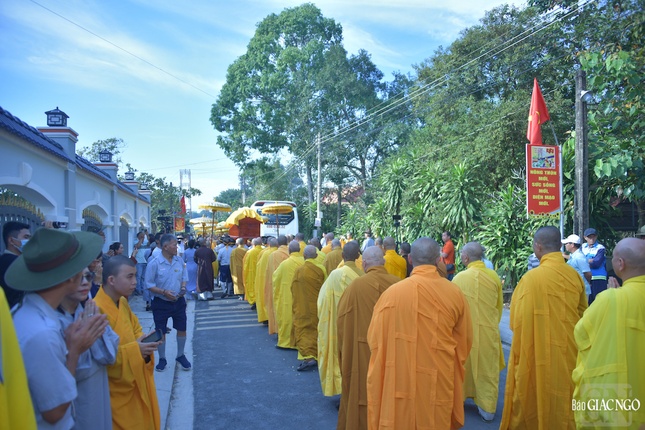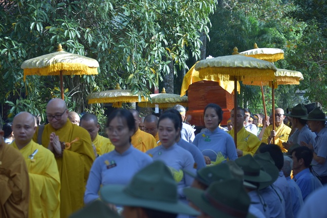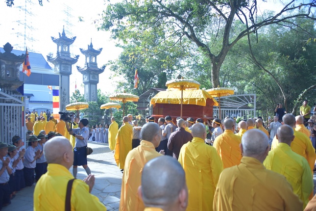 Trong tiếng đồng thanh niệm Phật của chư tôn đức Tăng Ni, toàn thể Phật tử, kim quan của Hòa thượng đã được cung thỉnh rời Giác linh đường tại chùa Phật Ân, đưa lên xe di chuyển đến nơi trà-tỳ tại Nhà hỏa táng Hòa Lạc Viên - Sala Garden (H.Long Thành, tỉnh Đồng Nai).