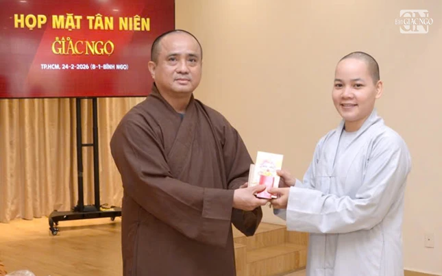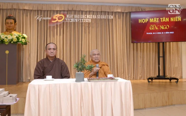 Thượng tọa Tổng Biên tập cũng gửi lời chúc sức khỏe, bình an đến chư Tăng Ni, các thành viên của báo cùng quý độc giả, Phật tử gần xa. Đồng thời, Thượng tọa nhắn gửi tập thể cán bộ, nhân viên cùng nhau chia sẻ và nỗ lực xây dựng tờ báo trong năm 2026 với những bước tiến mới, đánh dấu bước ngoặt chuyển mình quan trọng cho hành trình sau 50 năm của Báo Giác Ngộ.