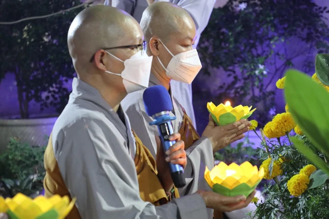 Theo truyền thống hàng năm, mùng 1 Tết Nhâm Dần, chư Ni, Phật tử Quan Âm tu viện (quận Phú Nhuận, TP.HCM) đã khai đàn Dược Sư - cầu bình an đầu năm mới.