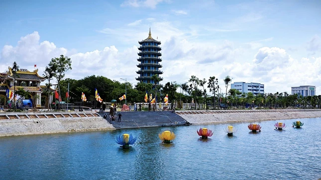 GNO - Hòa trong không khí hân hoan kính mừng Đức Thế Tôn đản sinh, chiều nay, 10-4-Quý Mão, Ban Trị sự GHPGVN tỉnh hạ thủy 7 hoa sen kính mừng Đức Phật đản sinh trên sông Cầu Mười.