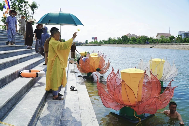 Lễ hạ thủy 7 hoa sen trên sông Cầu Mười chiều nay có 7 màu sắc sinh động, tươi vui được thiết kế có cánh sen nhiều màu, nhụy sen màu vàng... nhằm hòa vào không khí hân hoan kính mừng ngày Khánh đản của Đức Phật khắp nơi.
