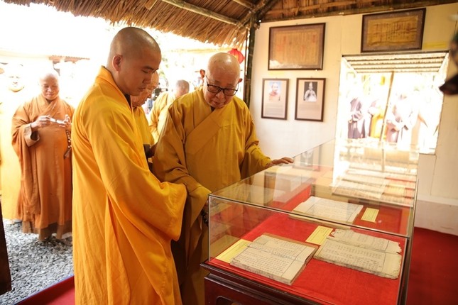 Những tác phẩm được trưng bày lần này gồm: nhiều kinh sách cổ quý hiếm, các mộc bản, và các vật dụng thường nhật của chư vị Tổ sử,… Ngoài ra, còn trưng bày giới thiệu hành trạng chư vị tôn đức khai sáng thiền phái như: ngài Minh Hải - Pháp Bảo, Hòa thượng Thích Quảng Đức...