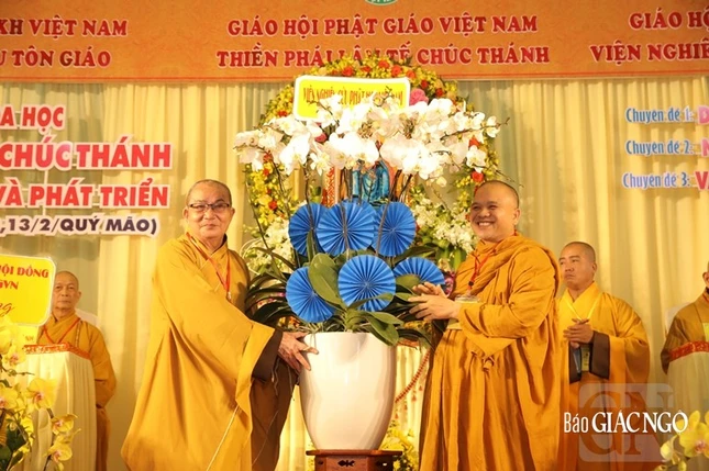 Ban Thường trực Hội đồng Chứng minh GHPGVN tặng hoa chúc mừng |