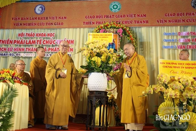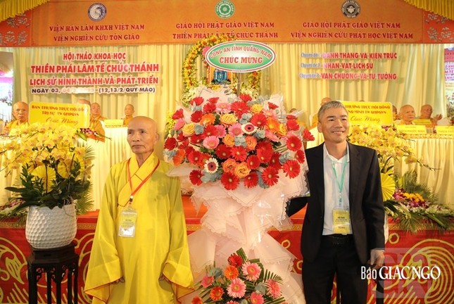 Tại lễ khai mạc, nhiều lẵng hoa cũng đã được gởi đến chúc mừng hội thảo của Thiền phái Chúc Thánh sáng nay.