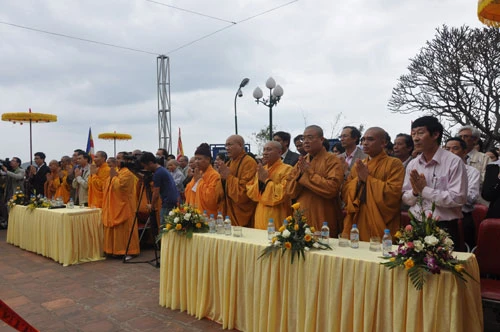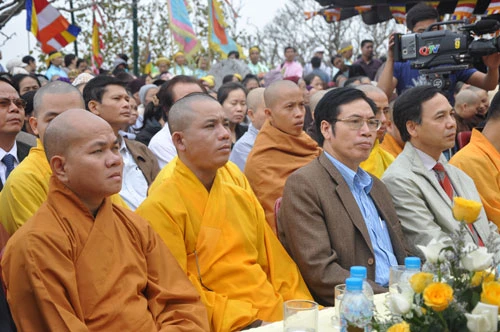 Chứng minh buổi lễ có chư tôn đức Phó chủ tịch HĐTS TƯGH: TT. Thích Thanh Nhiễu; TT. Thích Quảng Tùng - Trưởng Ban Từ thiện Xã hội TƯ, TT. Thích Gia Quang - Phó tổng thư ký kiêm Chánh Văn phòng 1 TƯ cùng đông đảo chư Tăng Ni HĐTS; Ban Trị sự Tỉnh hội Phật giáo Quảng Ninh và các tỉnh, thành phái Bắc.